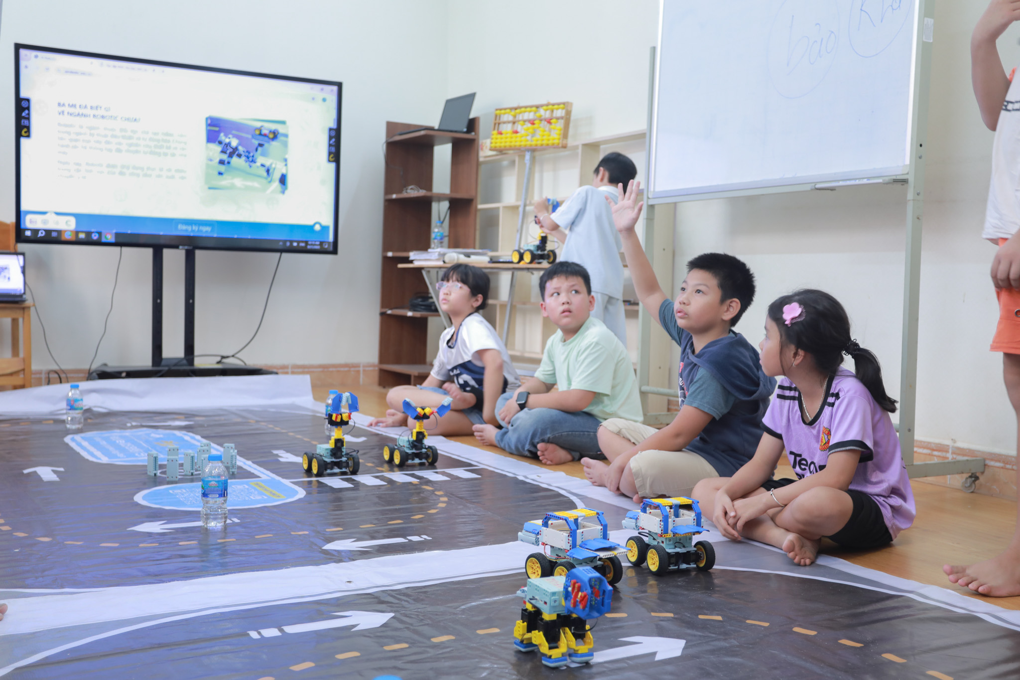 - Trải nghiệm học qua thực hành: Mỗi bài học là một dự án nhỏ, nơi trẻ tự mình tạo ra sản phẩm thật như những bạn robot gần gũi xung quanh ta.